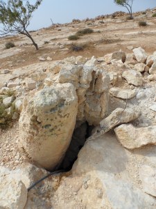 But as he led us around the village, accompanied by a couple of its residents, our guide Ayal described the place as a “museum of the occupation”. And indeed, juxtaposed to the archaeological site on the other side of the road, were the archaeological remains of the destruction of Palestinian Susiya. The photographs I took are hardly the most dramatic images of recent events at Susiya, many of which can be found at the ActiveStills site, showing clashes between military and settlers on the one side, and residents and activists on the other. Nor are they the best photographs for showing what daily life is now like in Susiya, of which there are many taken by its women residents, which can be seen on the Susiya Forever blog. What they do show is what is left after the destruction by military bulldozers: a blocked well which now can’t be used for drinking water, but from which a thin pipe leads, providing some water for animals and irrigation; a cave dwelling with its stone roof torn off, being reused as an animal pen. The residents of Palestinian Susiya thus all live in an archaeological site that is a testament not only to the destructive power of the military occupation but also to their determination to remain. Their stubborn attachment to their land – where else can we go, they say, when asked why they don’t give up – obstructs the construction of a false image of peace, of peace after the conquest when the land has been cleared of Palestinians. The picture of peace in this scene is not only in the negation of the ruin wreaked by armed force, but also in the presence of the Palestinians on the land, living among ruins, so that one day they won’t have to.