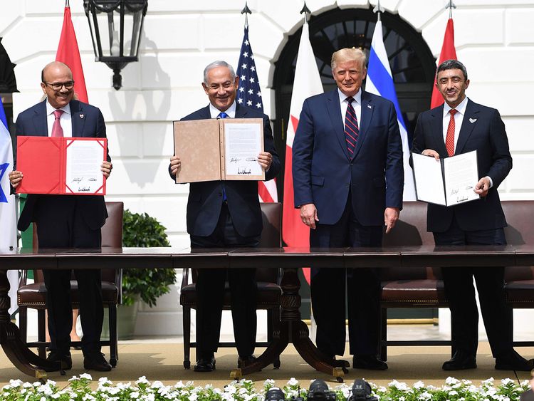 Perhaps its the absence of hand-shaking, which might be attributed to Covid-19 precautions if there were any evidence of such precautions being taken throughout the event. As it is, it looks as if Bahraini Foreign Minister Abdullatif al-Zayani, Israeli Prime Minister Benjamin Netanyahu, and UAE Foreign Minister Abdullah bin Zayed Al-Nahyan have all just received a certificate of good behaviour from Trump.