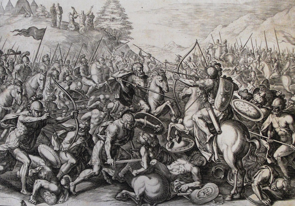 Joshua fighting Amalek, By Philip De Vere – Phillip Medhurst Collection of Bible illustrations. housed at Belgrave Hall Leicester, made possible by the Kevin Victor Freestone Bequest.